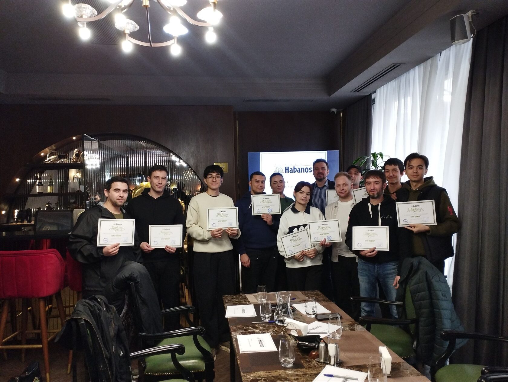 В Ташкенте прошло 2 курса профессионального обучения сигарам и сигарной культуре для представителей HoReCa: “Habanos Junior” в рамках программы Академии Habanos, посвященный кубинским сигарам и авторский курс «Фумилье 1.0» - практический курс для управляющих барами в ресторанах и гостиницах, а также для представителей табачного ритейла. Обучение проходило в сигарном лаунже Oscar Boutique Hotel, за что руководителям отеля огромная благодарность и уважение. Организатором курса традиционно выступила компания «Культ Сигар Узбекистан» (@cigars.uz), являющаяся основным импортером и дистрибьютером сигар, сигарил и аксессуаров в Республике, проводил курс Али Альбетков, управляющий партнер компании, обладатель звания Habanos Master. Основной фокус на обучении уделялся описанию видов и параметров кубинских сигар и сигарилл, а также уходу за сигарами, которые требуют специальных условий хранения (температуры и влажности). Обучение прошли 12 специалистов из сети Legion, ресторанов La Mer, бара Shanghai 1984 , каждому из которых удалось впервые в жизни лично подготовить и попробовать кубинскую сигару. Поздравляем всех участников семинаров, получивших сертификат международного образца, принимаемый во всех странах мира. Важным плюсом наличия сертифицированных специалистов в штате компании является возможность присвоения звания “Habanos Point” и “Habanos Lounge”.